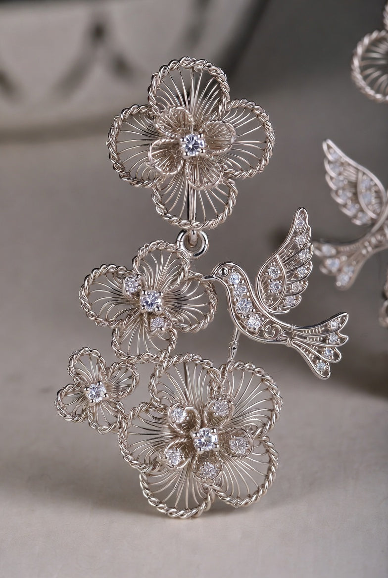 Tecnica del filigrana (huasi qia si): Sottilissime linee di metallo prezioso, fini come un capello, vengono piegate, sovrapposte e saldate con estrema precisione per creare complessi motivi floreali e di uccelli. Il risultato è leggero e delicato, ma carico di poesia orientale.